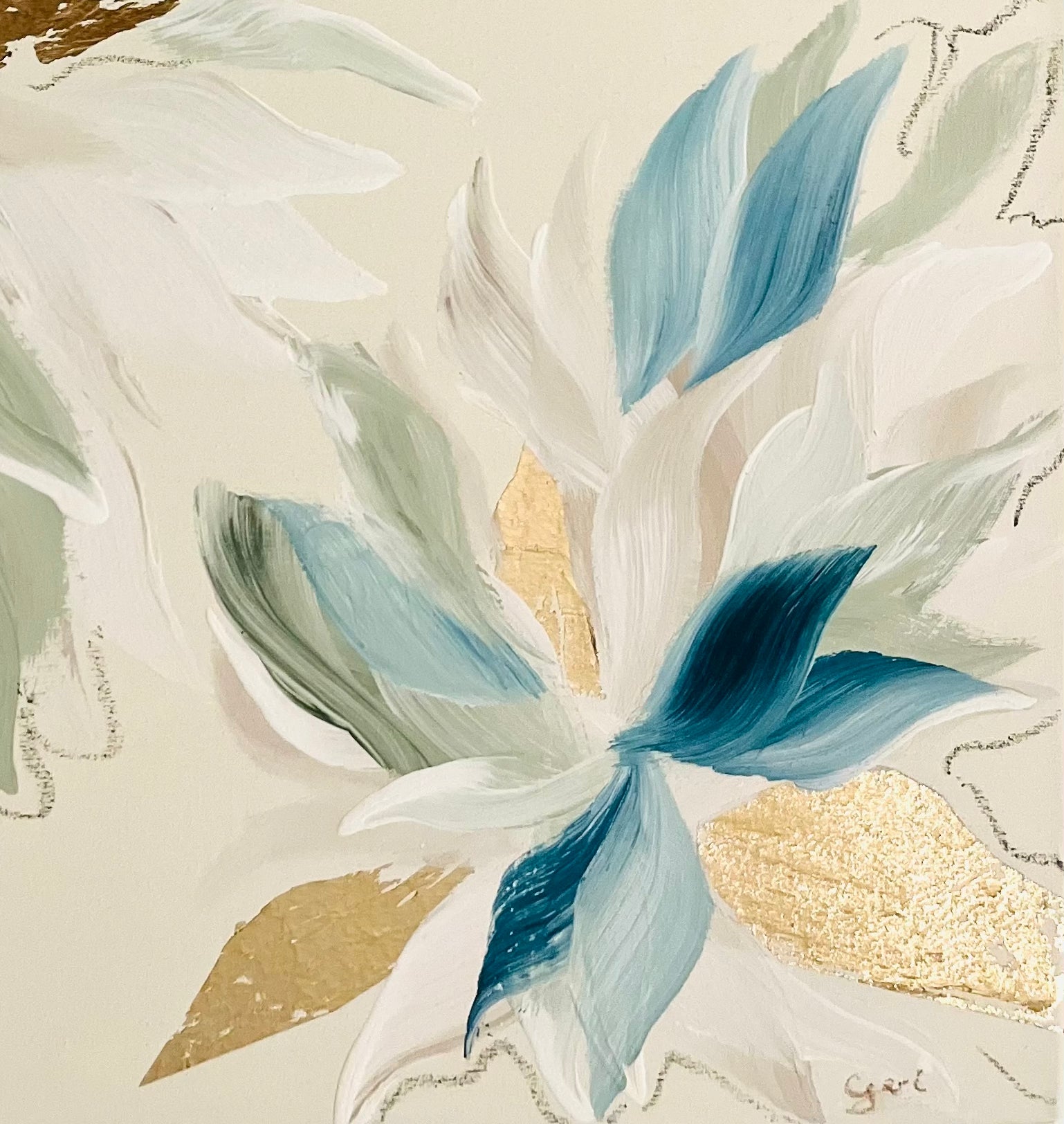 Utilizo diversas técnicas que me permiten incorporar texturas, brillos y capas, buscando que cada obra sea única e irrepetible...